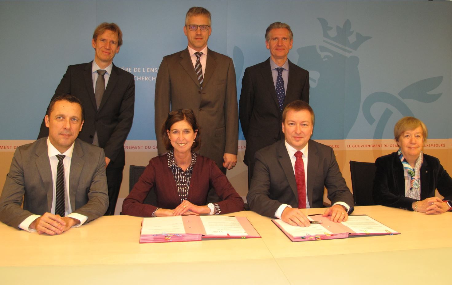 The agreement was signed by Marc Hansen, Minister Delegate for Higher Education and Research, and Lydia Mutsch, Minister of Health, both representing the Government, and by Dr Gregor Baertz, President of LIH’s Board of Directors, Dr Ulf Nehrbass, CEO of LIH, and Dr Catherine Larue, CEO of IBBL - Integrated BioBank of Luxembourg.